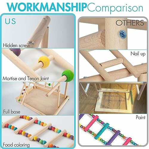 The sturdy construction of the Parrot Playground is one of its most appealing features. Made from durable wood, this playstand is built to withstand the playful antics of your feathered friends. The aesthetic appeal of natural wood combined with colorful toys makes it an attractive addition to any home.